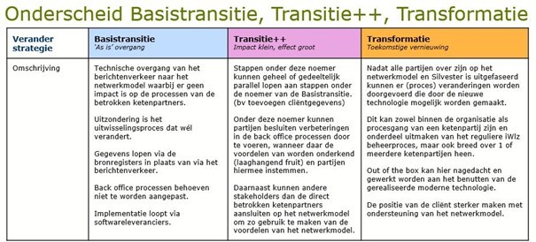 - Basistransitie: technische overgang, werkprocessen blijven hetzelfde